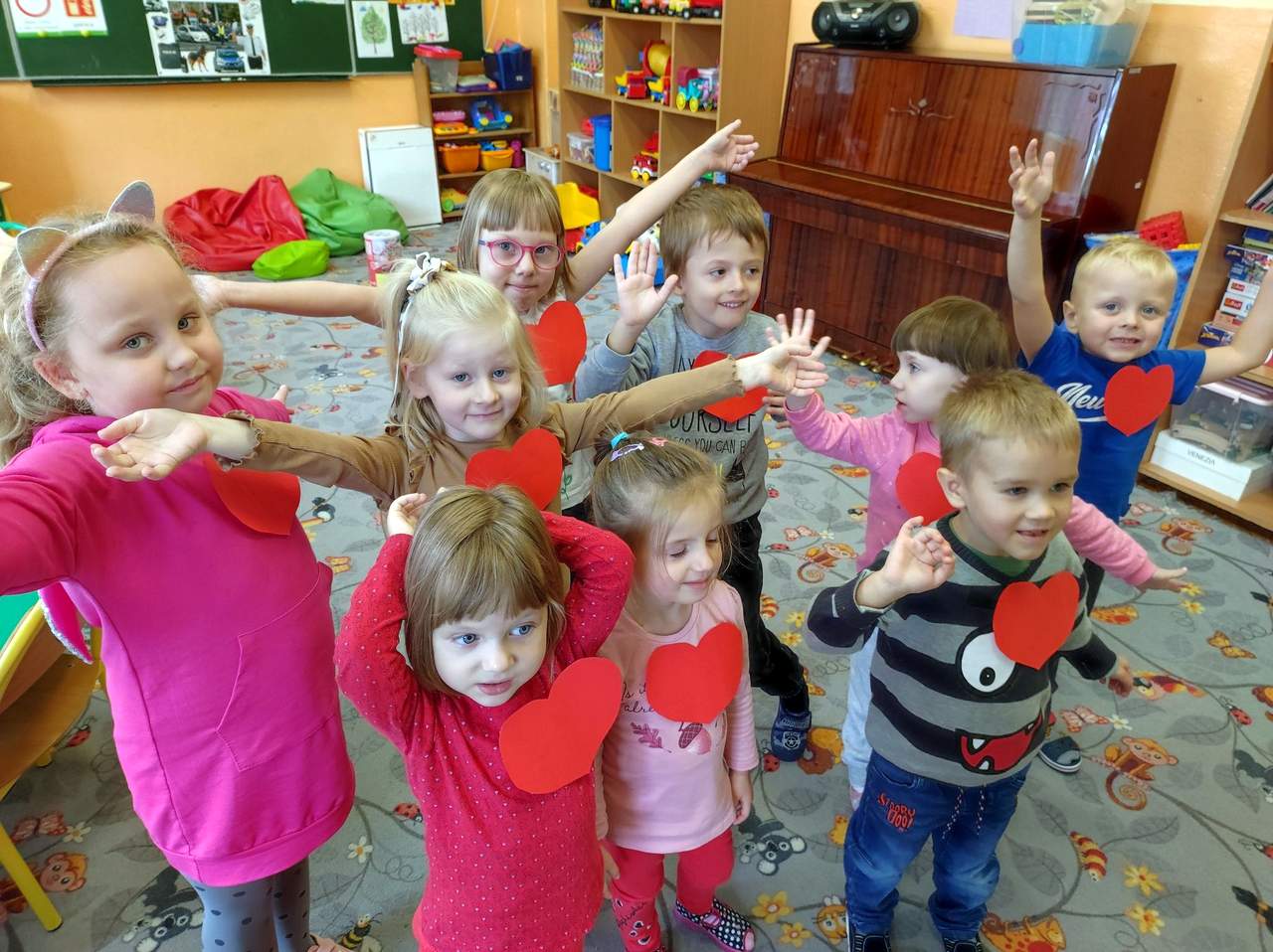 Obchodzony Światowy Dzień Serca stał się okazją, by porozmawiać o nim z naszymi przedszkolakami. W związku z tym o swoje małe serduszka i serduszka swoich najbliższych postanowiliśmy zadbać. Dzieci wsłuchały się w rady przekazane przez nauczycieli a zamieszczone w poradniku dla kobiet "Dobre Rady". Przedszkolaki dowiedziały się między innymi, że by mieć zdrowe serduszko należy: dbać o wagę, aktywność fizyczną, dobrą dietę, sen czy ograniczyć sól. Dlatego też, dbając o sprawność fizyczną śpiewaliśmy piosenkę "Moje serce" połączoną z tańcem.