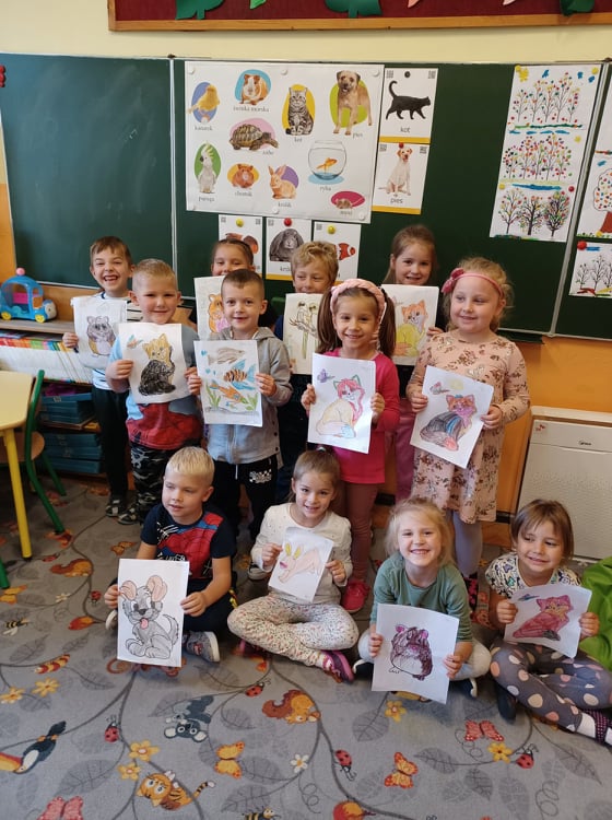 4 października 2021r. w naszym przedszkolu obchodziliśmy Światowy Dzień Zwierząt. Dzień ten miał na celu uświadomienie dzieciom, że zwierzęta, które z nami mieszkają i które są obok nas, również mają swoje prawa. Dzieci wypowiadały się na temat swoich ulubieńców, poznały różne ciekawostki na temat zwierząt oraz wiadomości dotyczące opieki nad nimi. Dowiedziały się też, że zwierzęta czują jak ludzie i nie są zabawką, którą można wyrzucić. Przedszkolaki wykonały pracę plastyczną – kolorowały rysunki przedstawiające zwierzątka.
