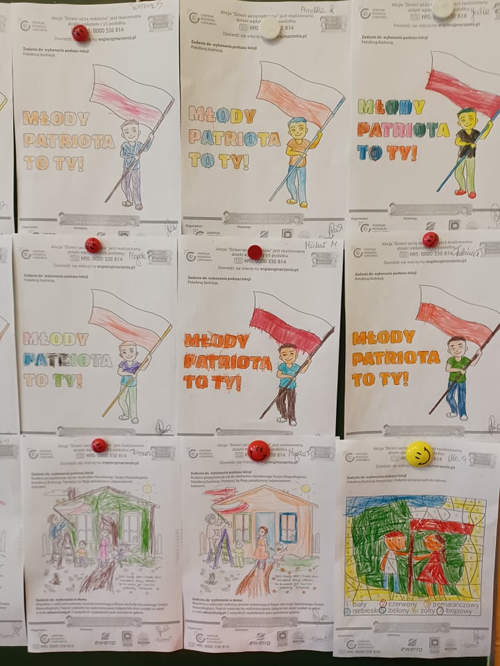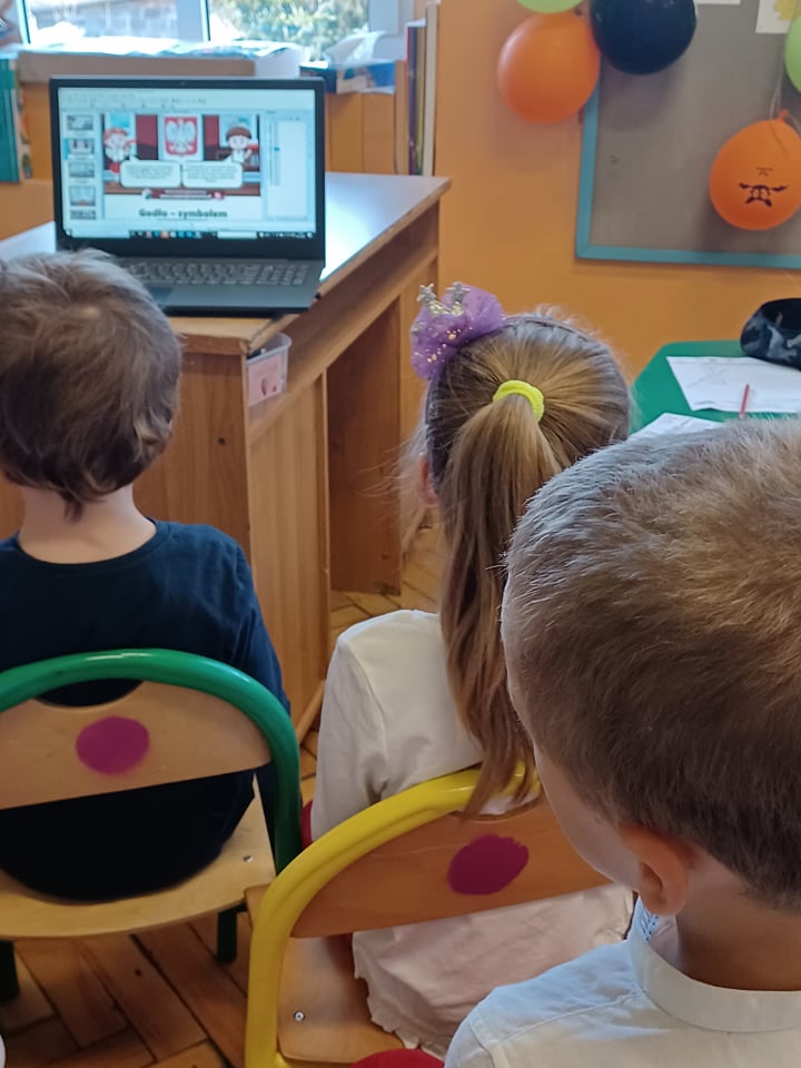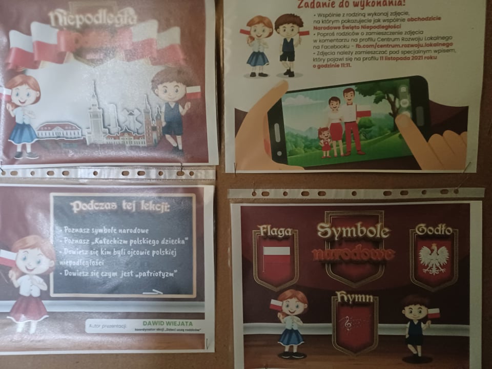 W przededniu Narodowego Święta Niepodległości przedszkolaki realizowały 3 lekcję akcji "Dzieci uczą rodziców" pod hasłem "Niepodległa Polska" Dzieci odśpiewały hymn narodowy, recytowały wiersze "Flaga", "Jaki to znak", "Katechizm Młodego Polaka", oglądały prezentację i wykonały pracę plastyczne.