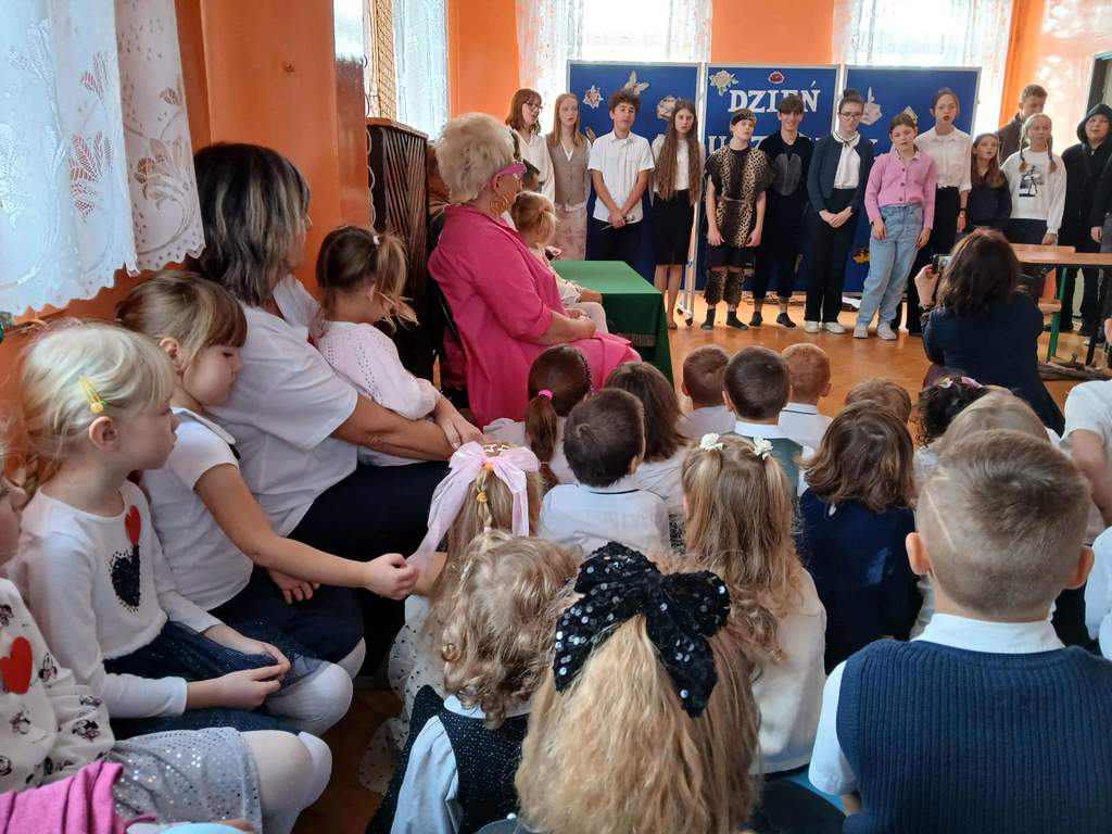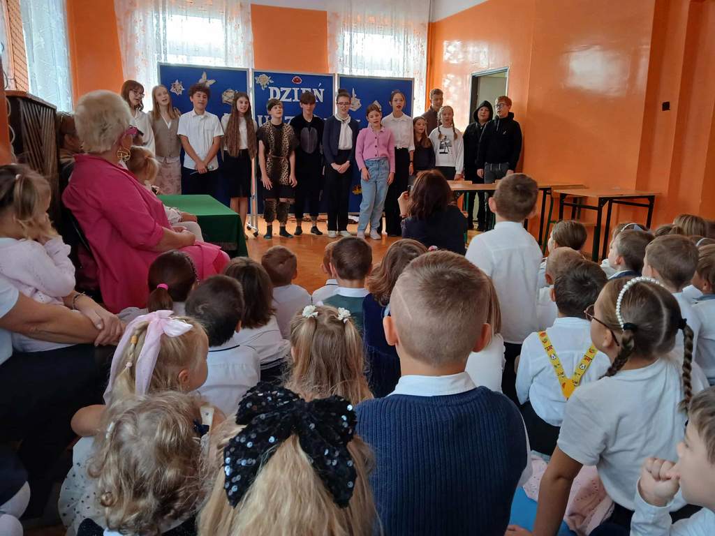 Symboliczny upominek wręczony każdej z pań to ukoronowanie pięknego występu uczniów i przedszkolaków. Na koniec pani dyrektor Aneta Szewczyk podziękowała wszystkim dzieciom za piękną inscenizację i śpiew. Złożyła nauczycielom życzenia z okazji ich święta. Miło i sympatycznie spędziliśmy ten dzień.