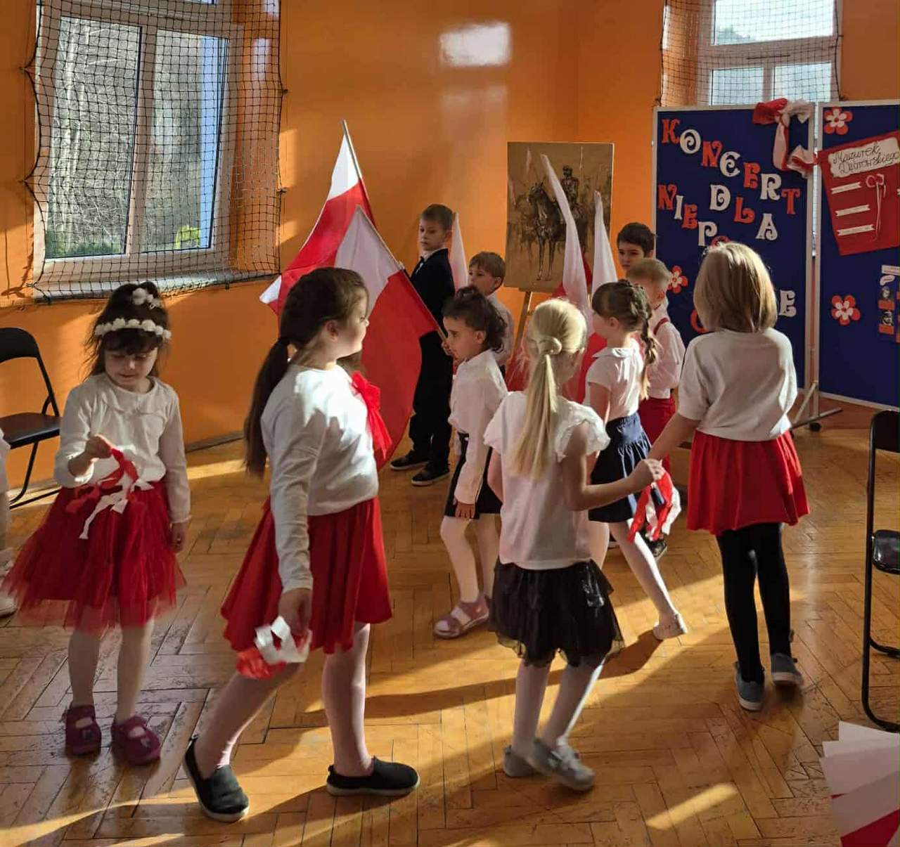 14 listopada obchodziliśmy w naszej szkole Uroczyste obchody Święta Niepodległości. W występach artystycznych brali udział wszyscy uczniowie i przedszkolacy. Uczniowie każdej z klas śpiewali jedną z pieśni patriotycznych. Przedszkolacy natomiast zaprezentowali się w tańcu z Flagami do utworu “Walc – Des dur” Fryderyka Chopina oraz w recytacji wiersza Władysława Bełzy “Katechizm polskiego dziecka” inaczej zwany “Kto ty jesteś? Wszyscy uczestnicy wykazywali patriotyczną postawę i miłość do Ojczyzny!!! Brawa