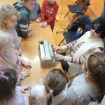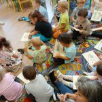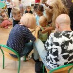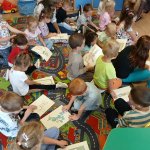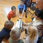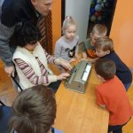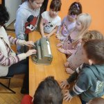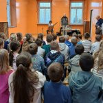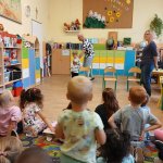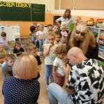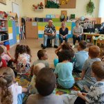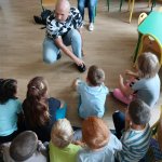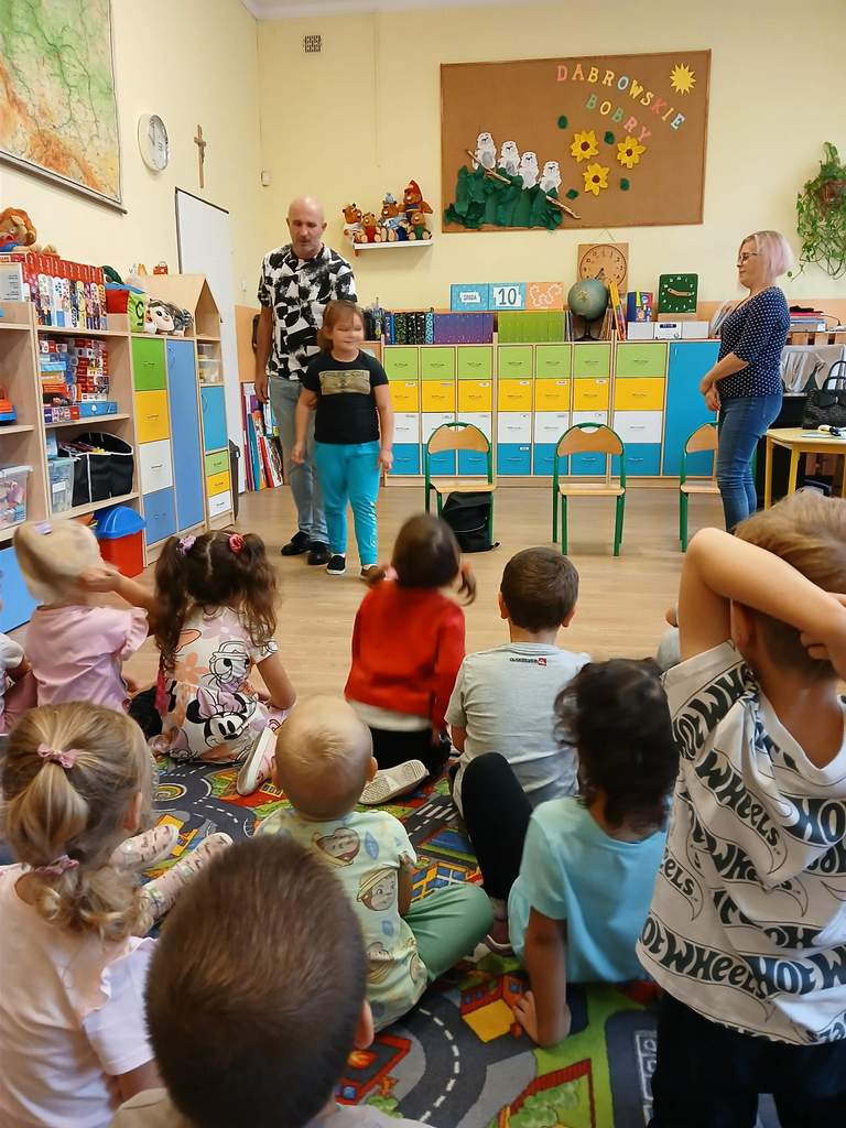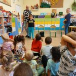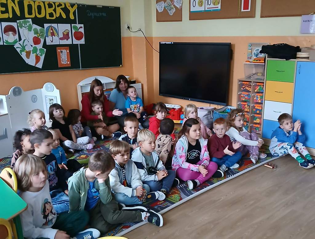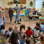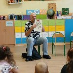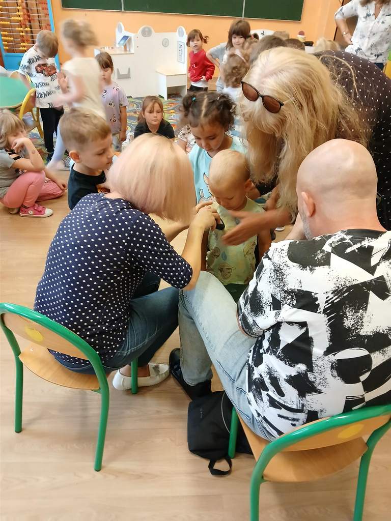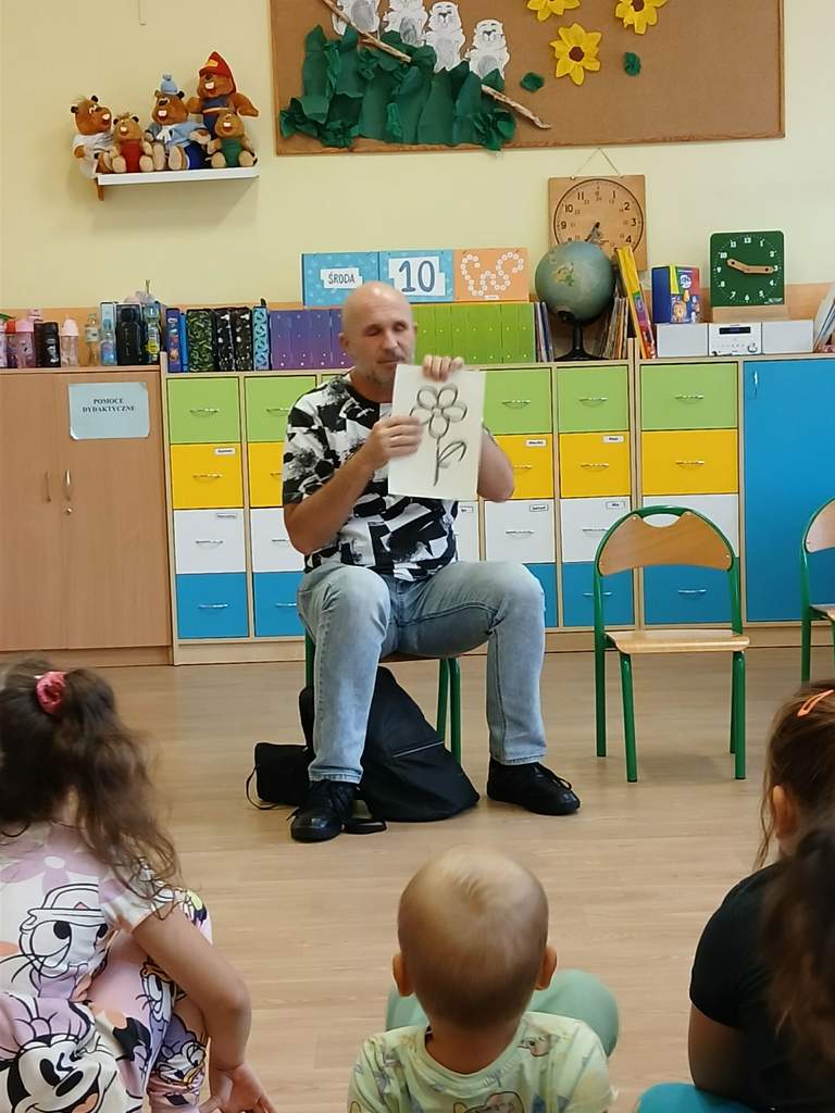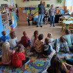 - 17.11.2025 - spotkanie z opowieścią muzyczną o tolerancji "Kwiatek Bratek". Na zajęciach, nie mogło zabraknąć muzyki (gry na gitarze), jak i wspólnych rozmów o ulubionych książkach. Jeśli mowa o czytaniu i pisaniu, pani Katarzyna Nowak z fundacji, wyjaśniała uczestnikom jak ona czyta, używając do tego celu zmysłu dotyku (pismo punktowe – alfabet Braille’a), a nie wzroku. Dzieci mogły z bliska przyjrzeć się temu urządzeniu.