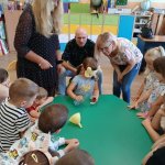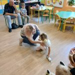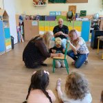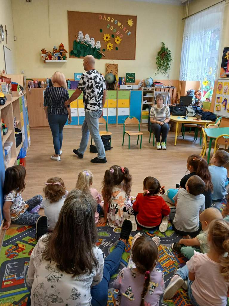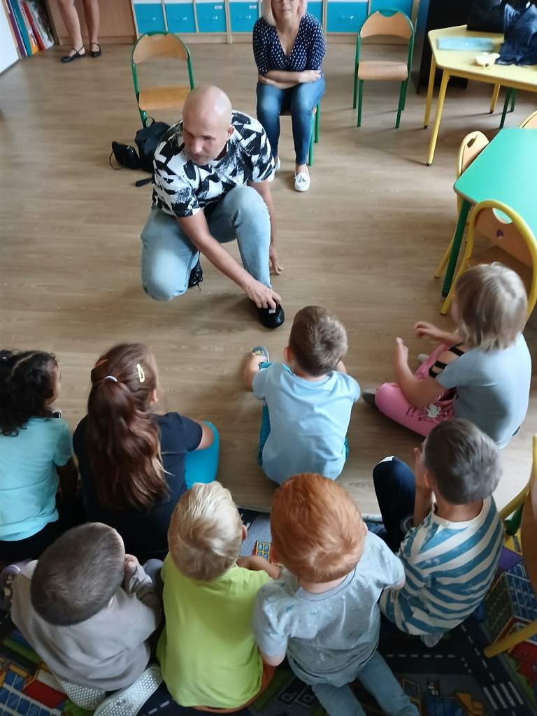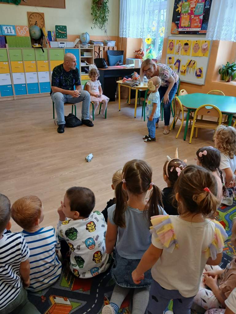 - 12.09.2025 - podczas zajęć goście zaproponowali zabawy związane ze zmysłami słuchu i dotyku (nalewanie wody za pomocą czujnika poziomu cieczy, klocki o rożnych fakturach i takie, które trzeba było dopasować do pary na podstawie wydawanego przez nie dźwięku, czy w końcu rozpoznawanie ilustracji na tyflografikach);