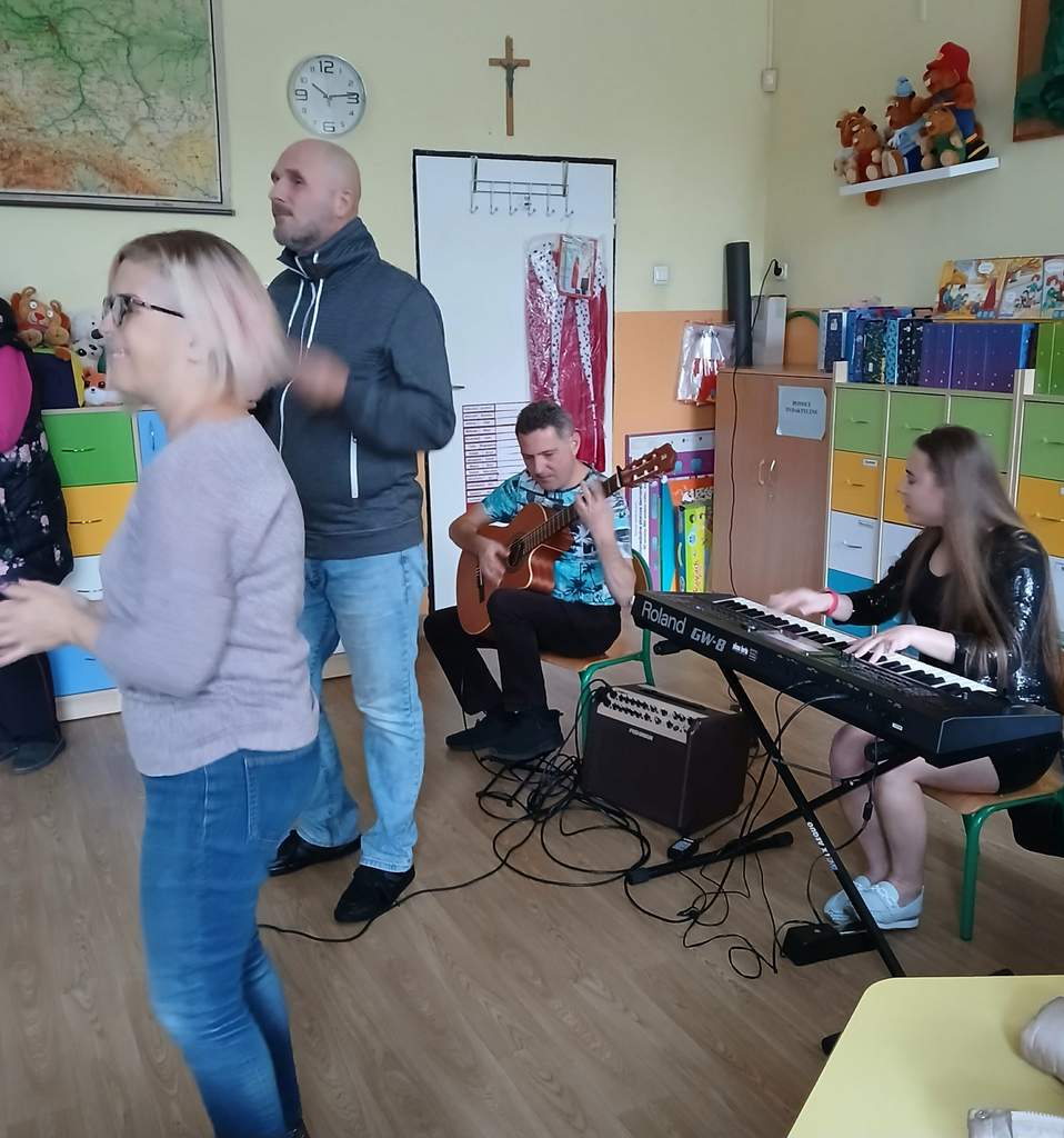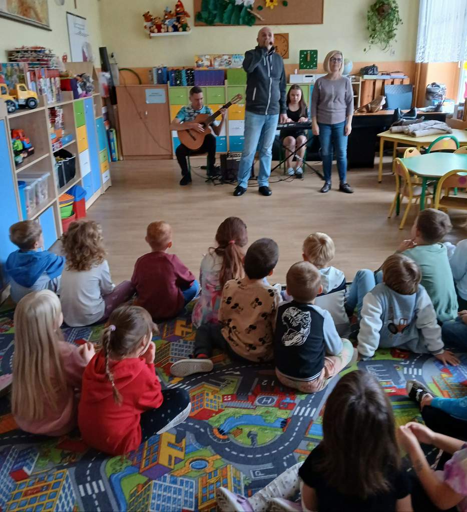 - 29.09. 2025 – koncert muzyczny - śpiew utworów własnych i wtórowanie refrenów przez przedszkolaki. Wokaliza: Łukasz Baruch i Patrycja Kute,r gitara, pianino - goście z Ukrainy też niepełnosprawni niewidomi Vitalina Duda i Żenia;