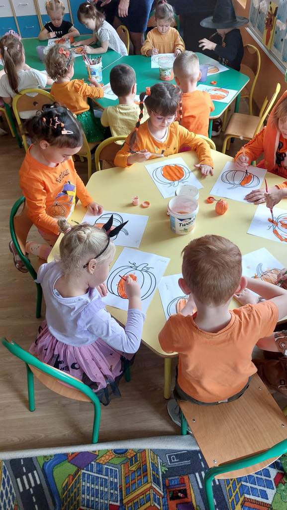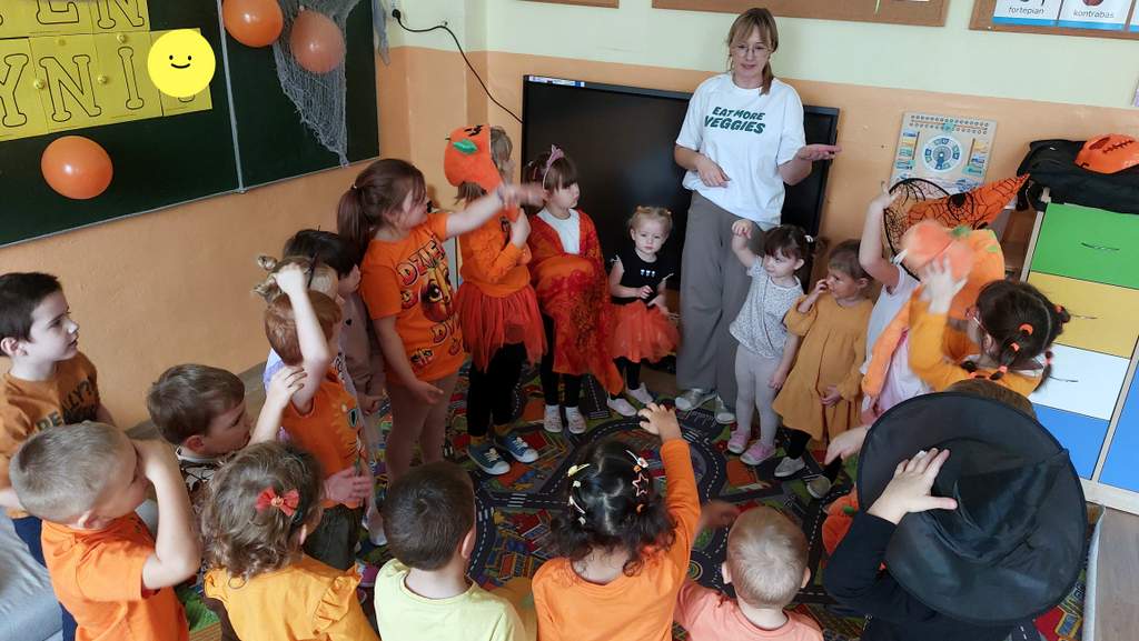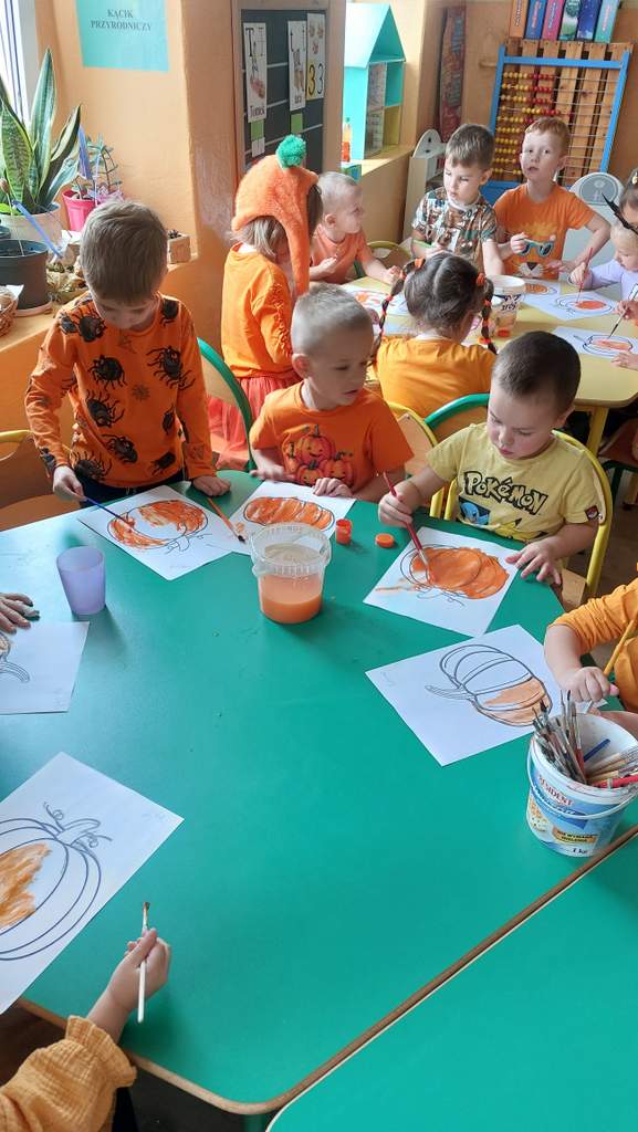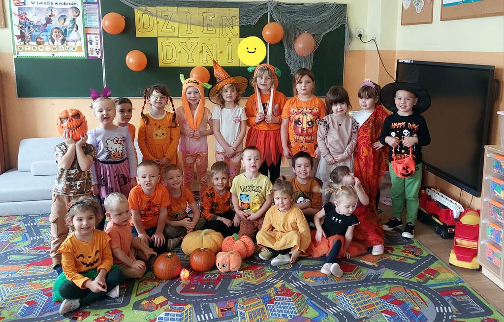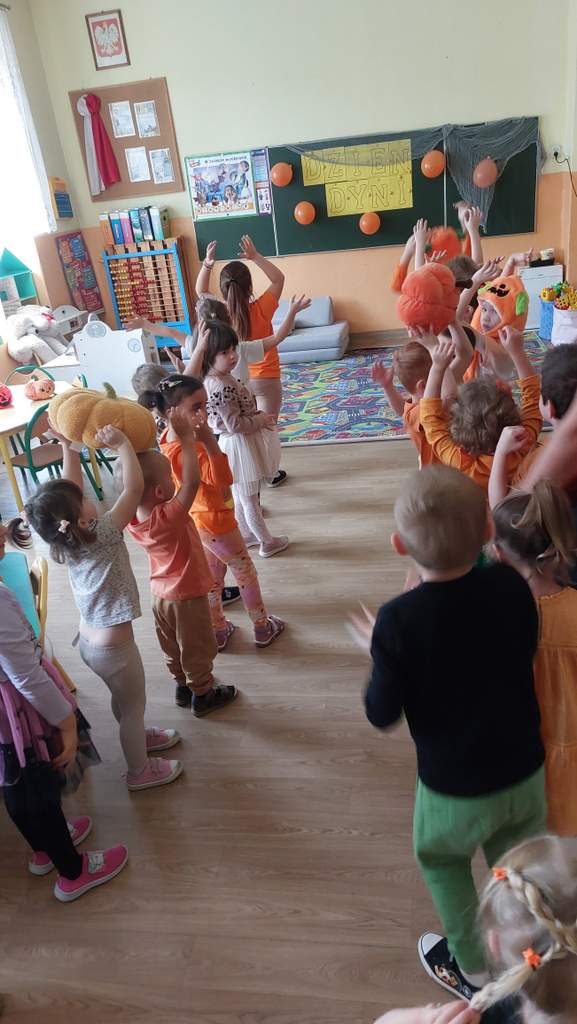 Dzień Dyni to współczesne święto jesieni, które łączy tradycję zbiorów z zabawą i edukacją. Dzieci kochają dynię z prostego powodu - ma kształt i kolor wprost wymarzony do zabawy. Okrągła, pomarańczowa, przypomina uśmiechniętą buzię jeszcze przed wyrzeźbieniem. Można jej dotykać, wąchać, a nawet skosztować w postaci zupy czy ciasta. To warzywo angażuje wszystkie zmysły! Nasze przedszkole świętowało dzień dyni 30 października, wtedy to wśród dzieci ubranych na pomarańczowo, można było poczuć się jak na dyniowej grządce. Dzień był przepełniony wierszykami, zabawami, konkursami, tańcami i zajęciami plastycznymi, jak i również uśmiechami i radością:)