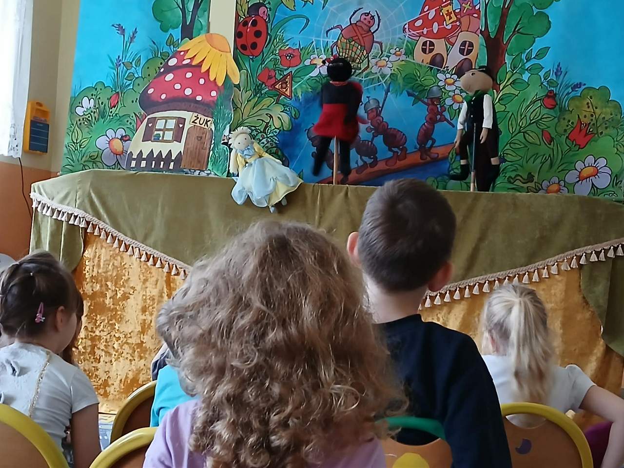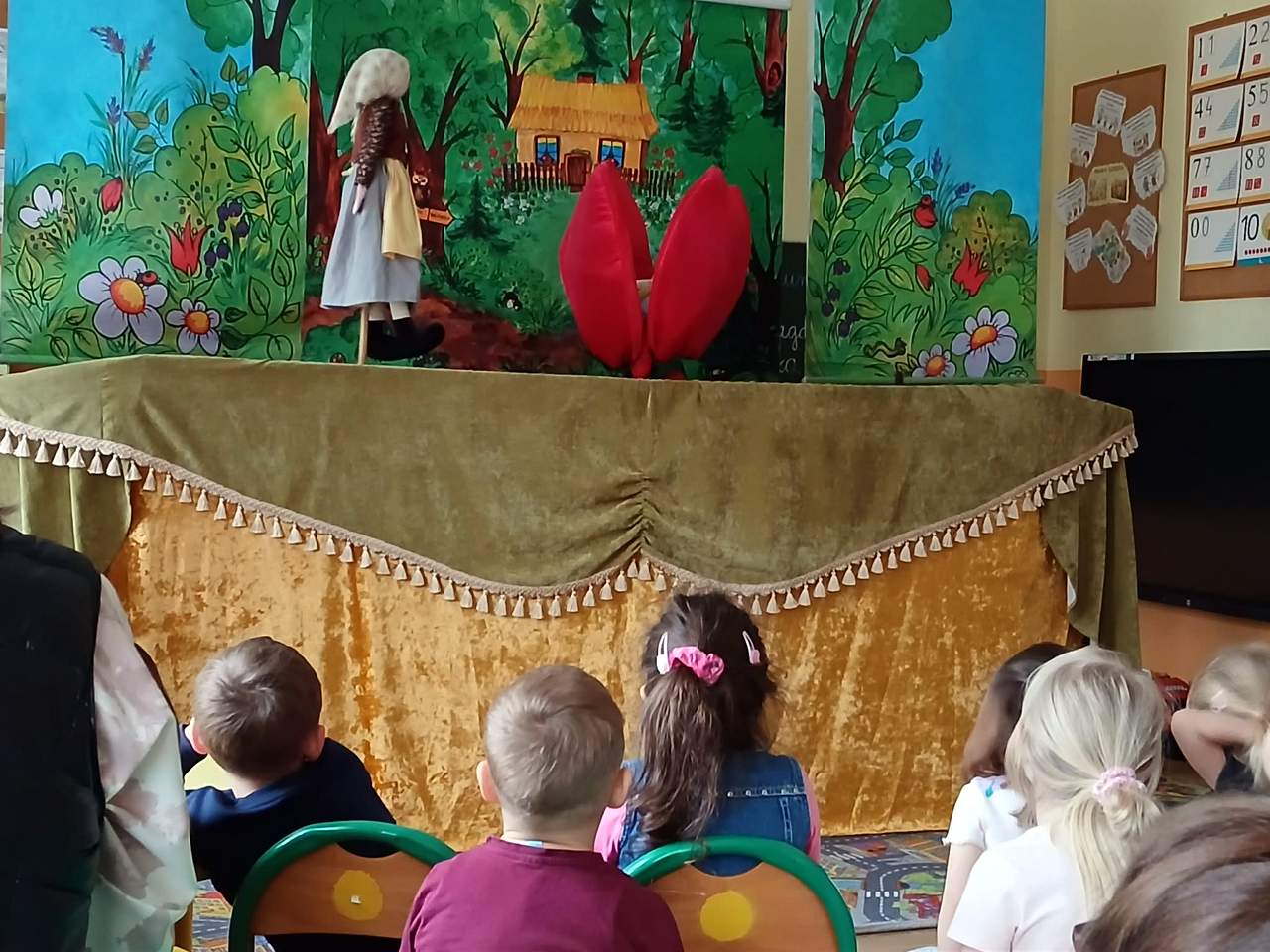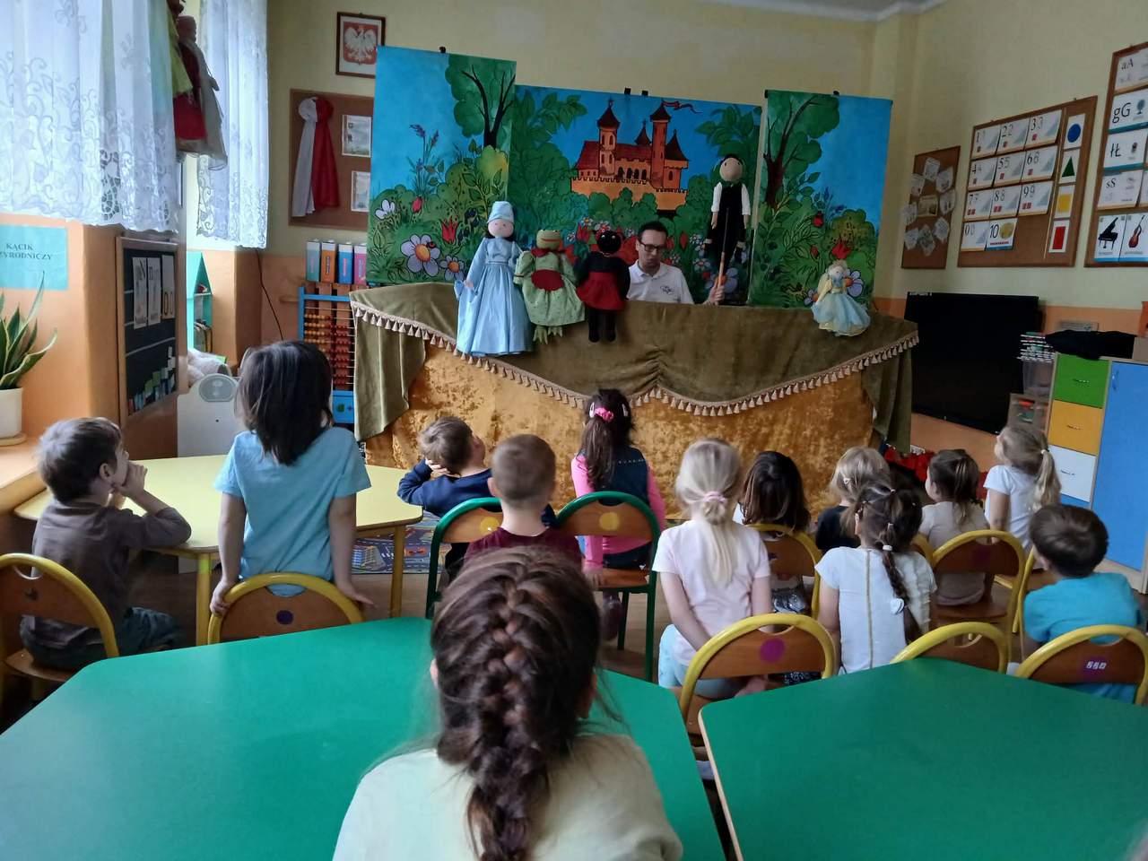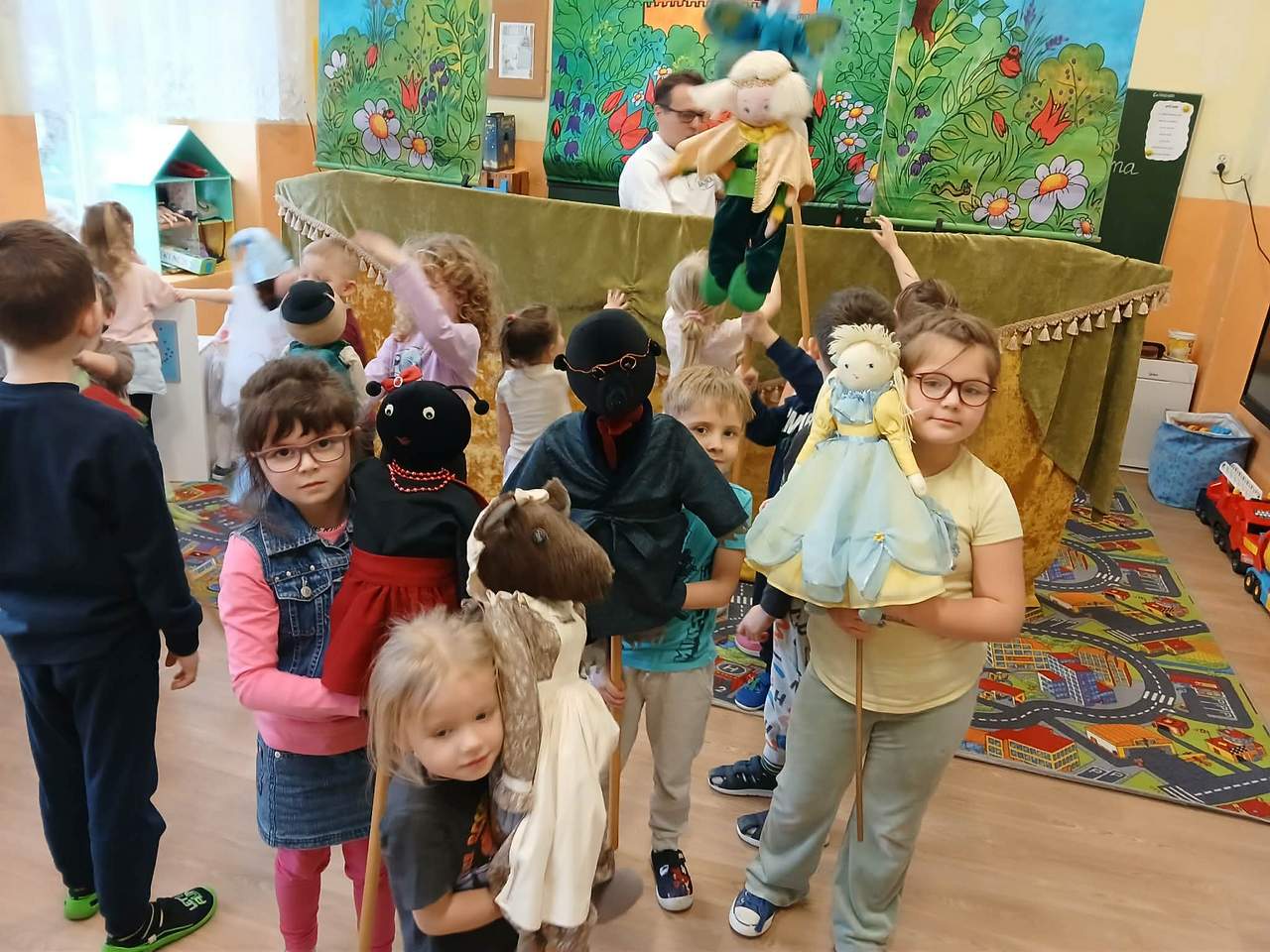 Dnia 10 lutego gościliśmy w naszym przedszkolu aktorów z Teatru Lalek Bajka. Przedstawienie, którego byliśmy widzami to “Calineczka”. W piękny i ciekawy sposób została nam przedstawiona przygoda małej dziewczynki o imieniu Calineczka. Po zakończeniu mieliśmy możliwość porozmawiania z aktorami o wykonywanym przez nich zawodzie. Mogliśmy też popróbować tego fachu biorąc lalki we własne ręce. Dziękujemy.